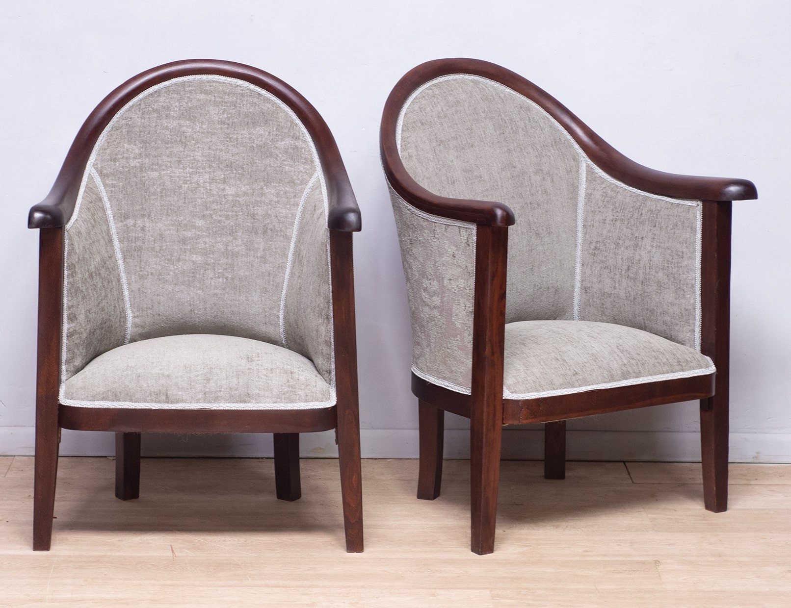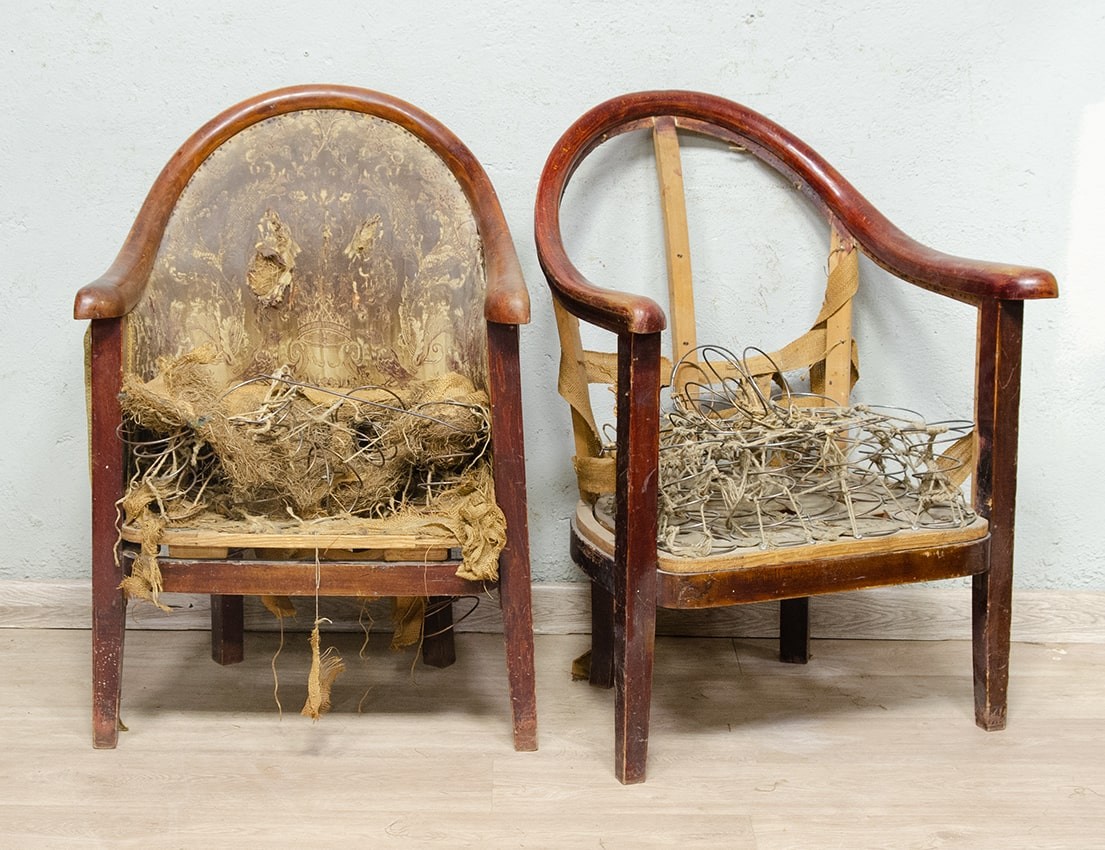 Перетяжка старого советского кресла с деревянными подлокотниками